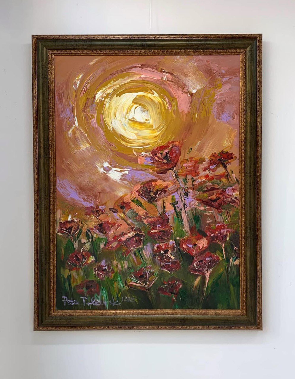 “Магията на маковете“ 3500лв. Маслени бои върху платно, релеф, златисти ефекти 140/110, 3500лв.