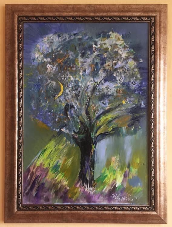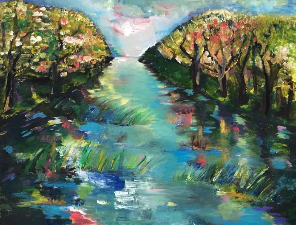 “Като река, която се прелива към небето“ 1000лв. Акрилна техника върху платно, релеф, 70/50, 1000лв.
